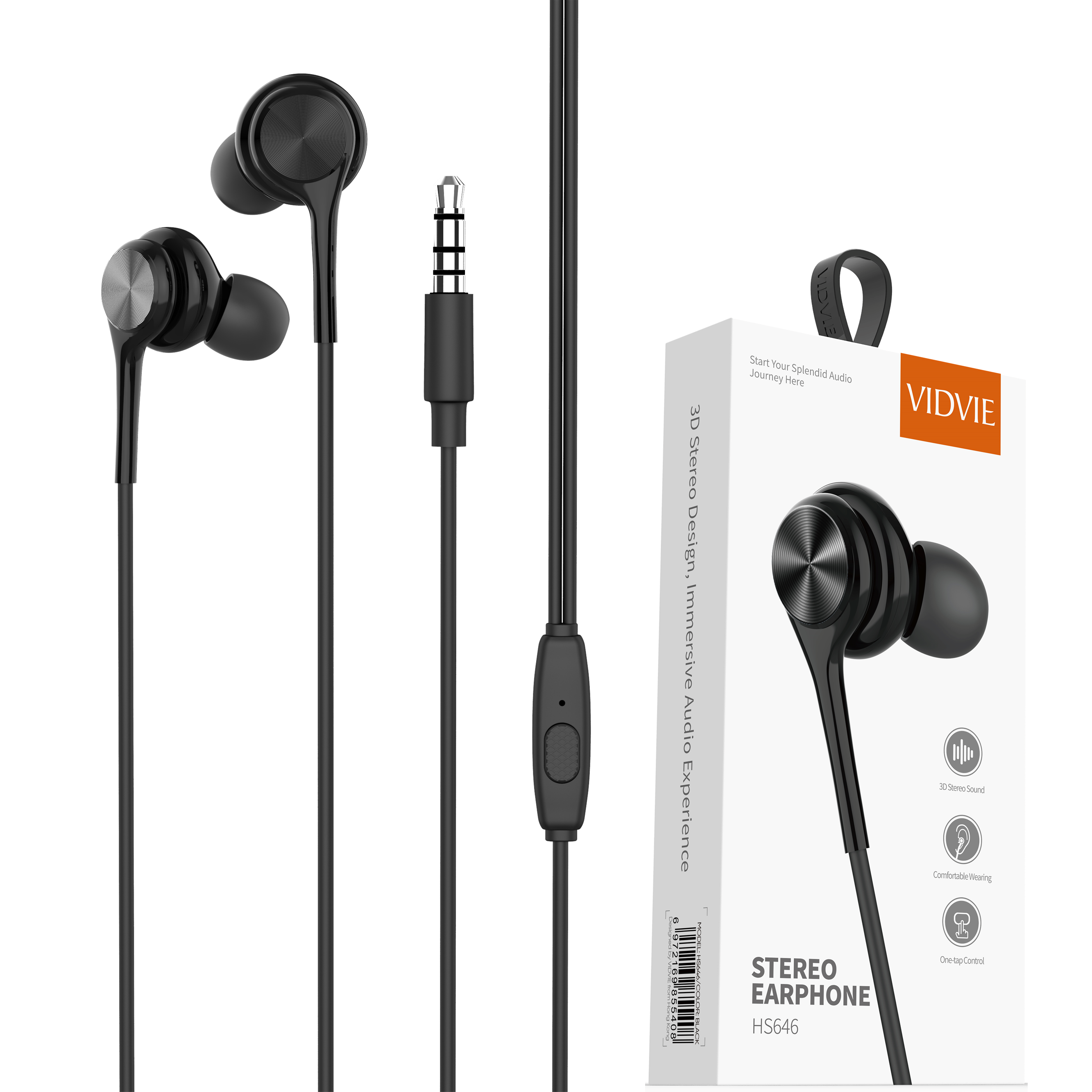 VidVie In-Ear Headphones Earbuds Earphone Headset with 3.5mm Headphone Plug AUX Connector HS646